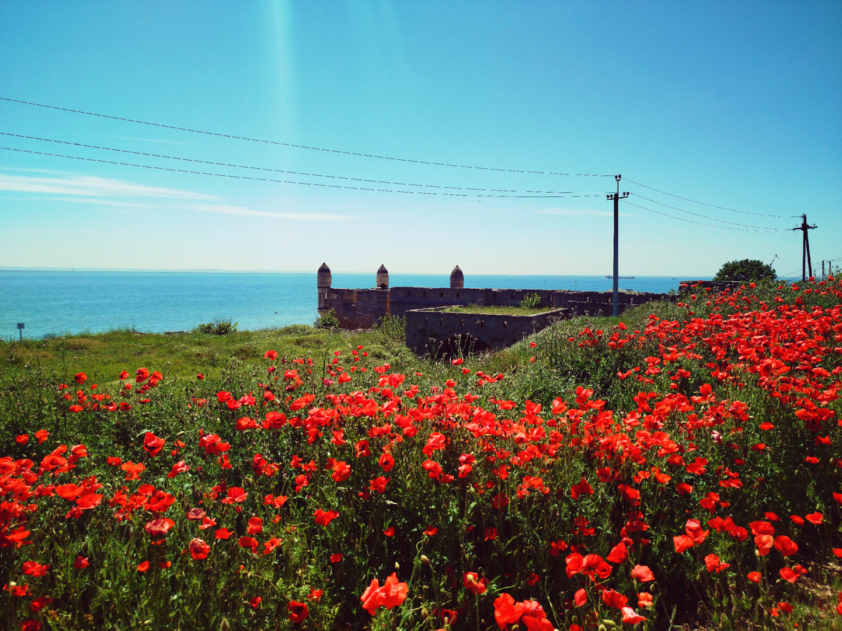 Я ступил на древние камни крепости Ени-Кале, и время замерло. Казалось, что история накрыла это место своим покрывалом, а алые маки, устремившиеся в небо, стали символом его вечного дыхания. Их тонкие стебли колыхались под морским ветром, а яркие лепестки, словно всполохи огня, устилали землю мягким, живым ковром. Я медленно шел по дорожке, покрытой маковым кружевом. Каждый мой шаг отдавался эхом в крепостных стенах, будто это место помнило всех, кто когда-либо проходил здесь. Я касался камней, чувствовал их шероховатость, их теплоту, пропитанную солнцем и временем. Здесь когда-то звучали приказы военачальников, гремели пушки, стражники вглядывались в горизонт, ожидая приближения врага. Теперь же крепость тихо смотрит в вечность, её стены хранят истории, а маковое поле перед ней словно кровавый отпечаток ушедших эпох. Я сел на камень у края стены, смотря на море, сияющее в лучах солнца. Ветер нес солёный аромат, смешанный с запахом трав, и я вдруг почувствовал, Ени-Кале не просто ста