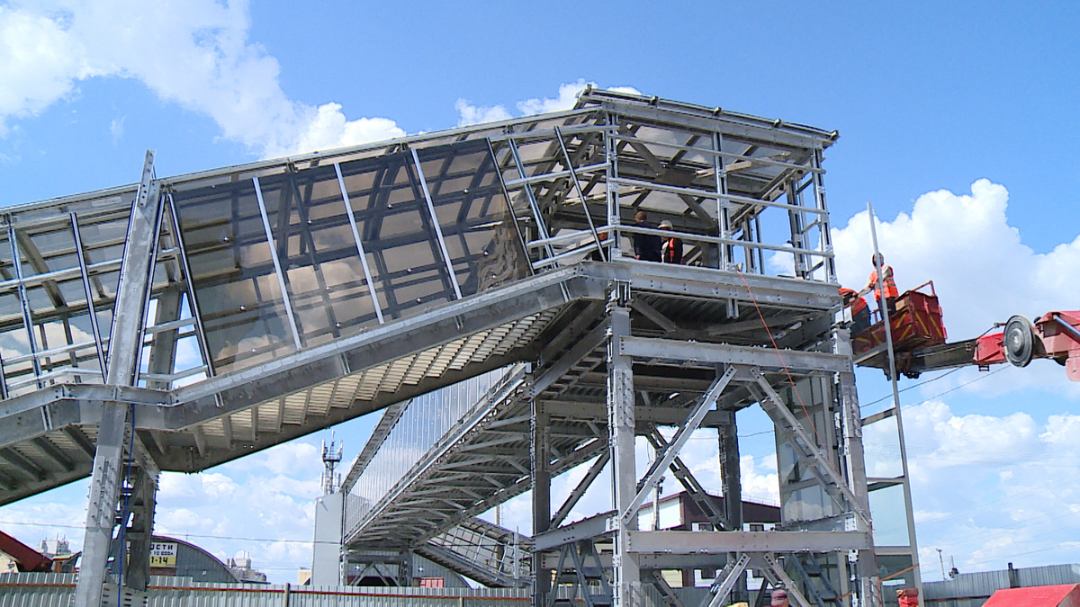 В Волгограде появится первый модульный надземный пешеходный переход с лифтом. Сооружение возводят над Третьей продольной магистралью. Объект позволит связать улицы Космонавтов и Шекснинскую. Когда все работы завершаться? Фото: Андрей Матюшков Строительные работы в бурно развивающемся Дзержинском районе – картина вполне привычная. Но именно возведение этого объекта волгоградцы ждали очень давно. Чтобы пересечь оживленную магистраль, жители сейчас используют подземный переход. Правда, расположен он довольно далеко. Новый объект сделает путь пешеходов через Третью продольную куда комфортнее и безопаснее. «Мы уже давно мечтали об этом, чтобы нам мост такой построили. Потому что до перехода очень далеко ходить. В Городище есть такой мост, и мы все мечтали, когда же нам построят такой», – сказала Татьяна Евстратова. «Надо было обходить как далеко, теперь раз – и в магазине. Не была ни разу, живу уже сколько лет», – поделилась Зинаида Стародубцева. Необходимость строительства такого объекта с