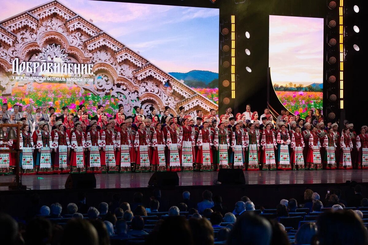 В Государственном Кремлёвском Дворце состоялся гала-концерт Х Международного фестиваля народной песни «Добровидение», посвящённого 80-летию Великой Победы и Году Защитника Отечества, каковым объявлен в нашей стране 2025-й.