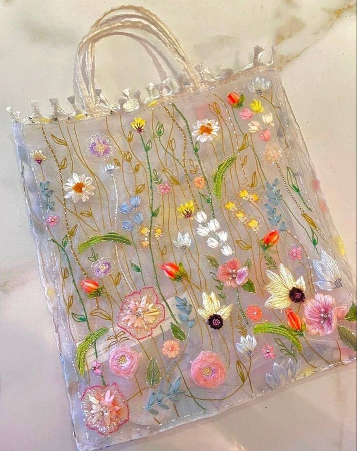 Кстати, если украсить авоську из тюля вышивкой или рюшами, получится