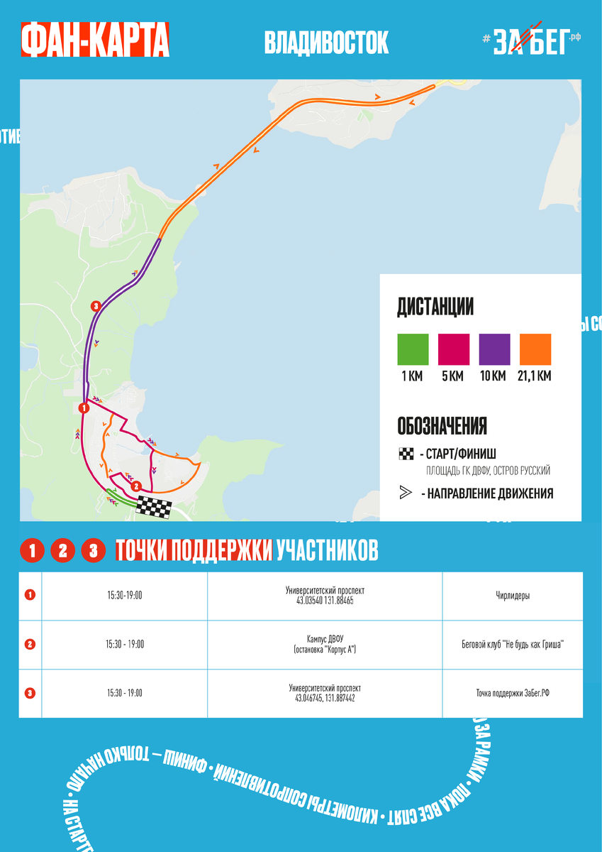 У ЗаБега.РФ есть особая сила — атмосфера. И создают её не только бегуны, но и вы — болельщики! 24 мая на трассы выйдут тысячи участников, и именно ваши аплодисменты, пятюни и крики «давай-давай!» могут стать тем, что поможет добежать до финиша с улыбкой. Места, где болеют громче всего, уже отмечены на карте — выбирайте точку, где вы будете заряжать энергией и станьте частью главного спортивного события весны. Увидимся на трассе!