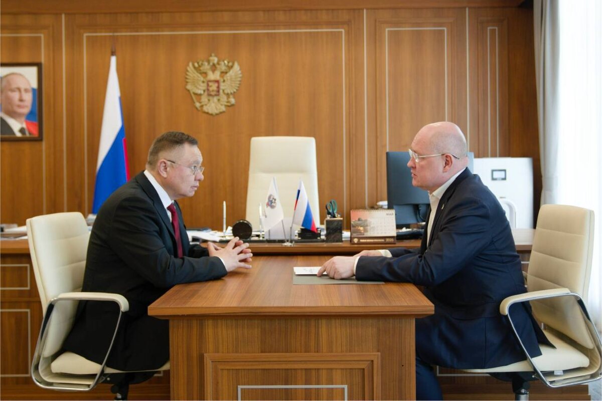 ⚡️ Фото дня: Михаил Развожаев с главой Минстроя России Иреком Файзуллиным обсудили ход строительства и реконструкции автомобильной дороги в
