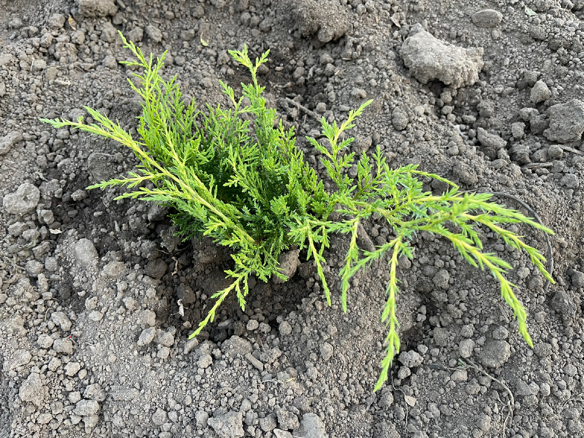 Три можжевельника посадила. Расстелила спанбонд - защита от сорняков. Высадила в ряд между хвойными малышами вербену.