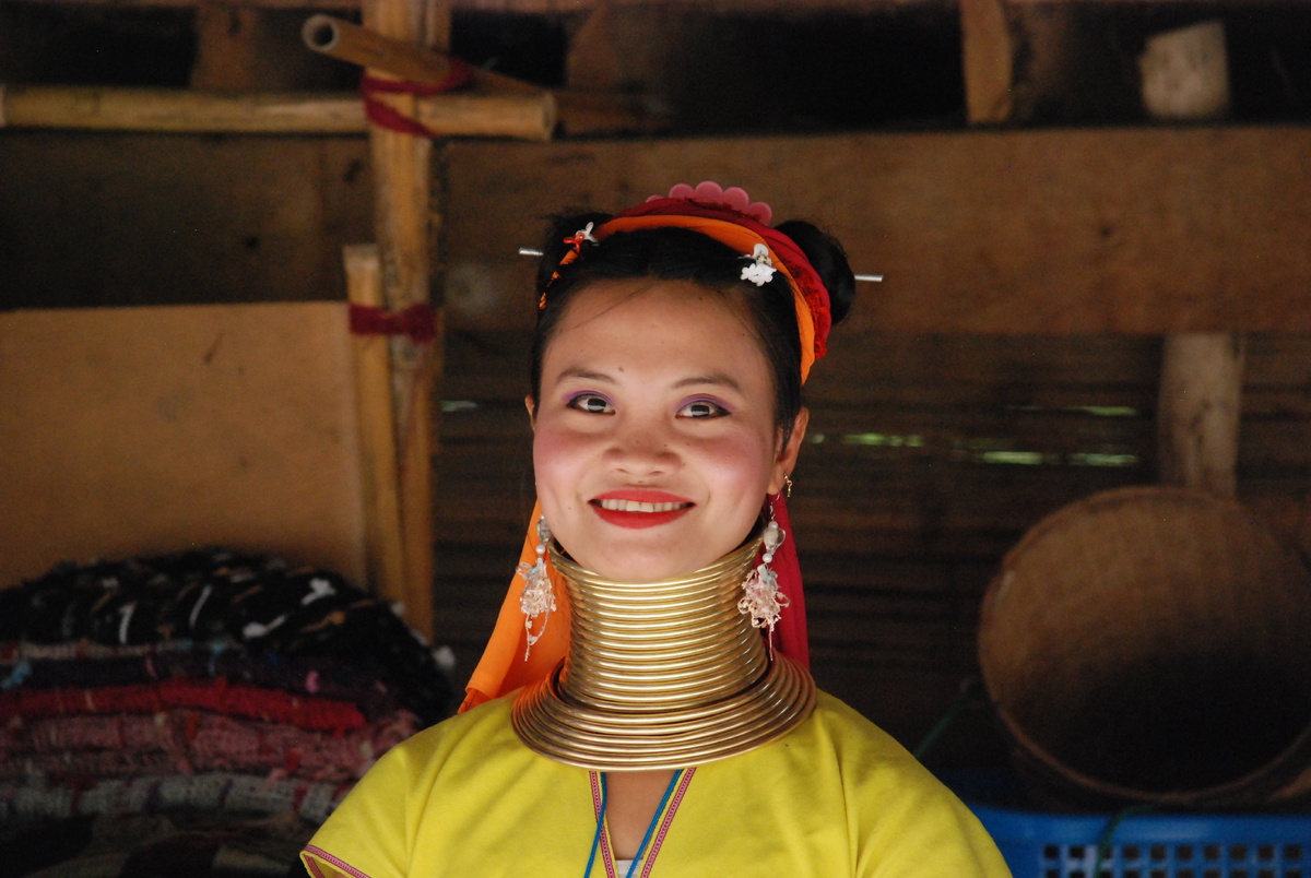 Непередаваемо длинная шея, украшенная латунными кольцами, лучше всего работает на привлечение туристов.