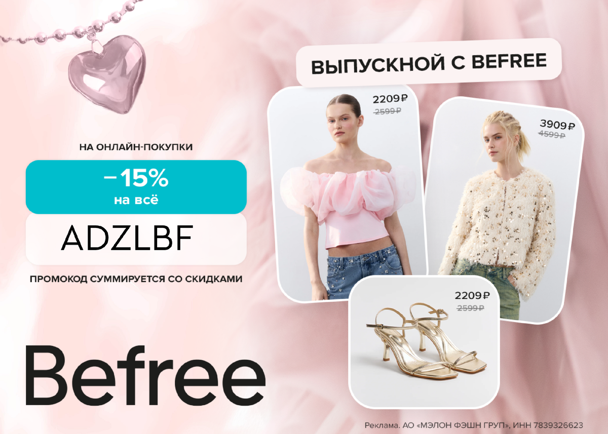 💗 Розовое платье Барби с пышными рукавами и глубоким вырезом – баланс дерзости и женственности (арт. BF2521414080). 💗 Топ с пышным лифом из органзы в трендовом стиле бохо (арт. BF2521418073). 💗 Соблазнительные и элегантные атласные босоножки на тонком каблуке, которые не позволят остаться в тени (арт. BF2526688004). 💗 Пышная юбка-пачка с огромным бантом в культовом стиле Кэрри Брэдшоу (арт. BF2521312038). 💗 Массивные серьги-капли, которые придадут изюминку образу и объединят его элементы (арт. BF2535551035). Переходите по ссылке https://befree1.prfl.me/6238cc608d70de4bf05c082d/z9u8hv?erid=2VtzqvYEs8R и собирайте топовый лук на выпускной. А по промокоду 👉 ADZLBF вы получите скидку 15% на всё, включая распродажу.