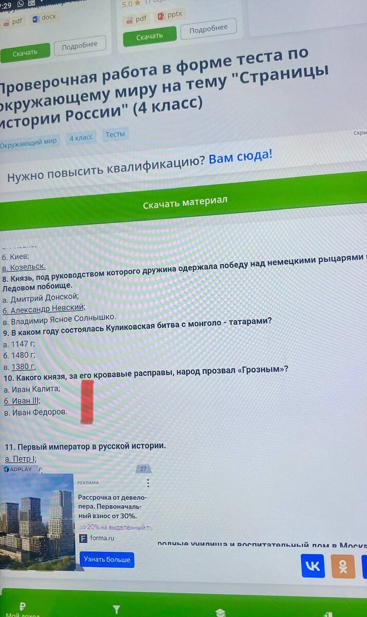 Начну с самого нелепого, помещается сразу в две рубрики: #Чемуучатнашихдетей и #проверяйсам На одной из самых популярных образовательных платформ infourok в первом попавшемся тесте за 4 класс обнаружила какие-то дикие ошибки. Не знать дату Ледового побоища, или в каком году впервые была упомянута Москва, или кто такой Иван Грозный? Такие ошибки можно только специально сделать ⚡️ Закрыла #infourok навсегда. А ведь этой платформе выдана лицензия на образовательную деятельность⚡️ 🔽 🔽 🔽 Перфекционисты любых взглядов, присоединяйтесь! ↪️ https://t.me/DoctrinesA