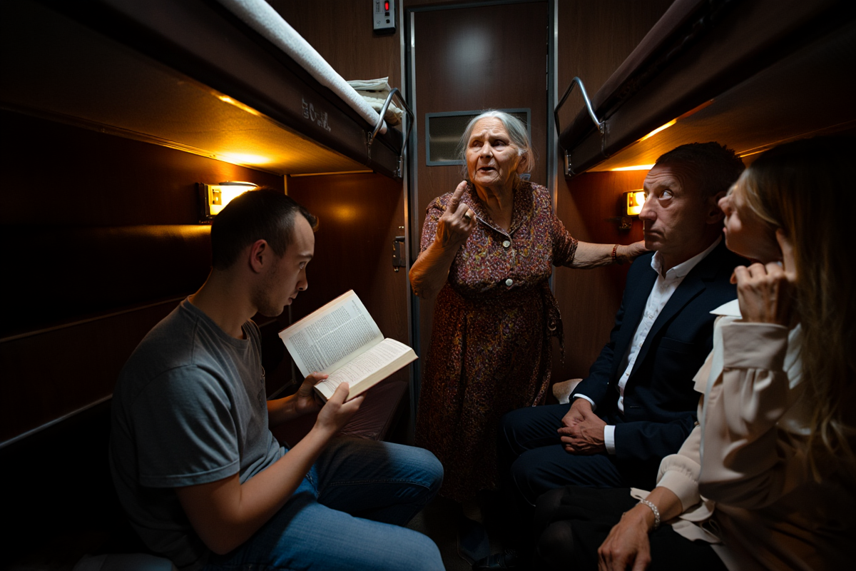 Вечерний поезд, плацкарт на сорок мест, свет лампы тускло пляшет по лицам — старым и молодым. Сумки уложены, постельное бельё выдано. Начинается обычная «ночная жизнь» вагона дальнего следования, где свои правила, запахи и маленькие драмы. На первый взгляд, обычный конфликт из-за нижней полки, но, как часто бывает, всё оказывается гораздо глубже.