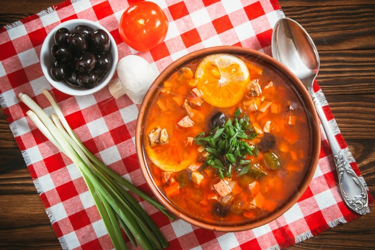 Солянка- блюдо с богатой и загадочной историей. Некоторые считают что солянка раньше называлась по другому-т.е. "Селянка" .Обычная сельская-деревенская еда а в более широком смысле вообще крестьянская. В старину любую мешанину и путаницу в общем называли солянкой. По другой версии многие историки считают что "Солянка" всегда была "Солянкой", и что происхождение её зависит от старинного рецепта. В его основе были : солёные огурцы, маслины и каперсы. В общем разнообразные солёные ингредиенты. Впервые появившись в 15 в. в поваренных книгах , солянка была рыбной и представляла из себя- острый, жирный суп. Его обычно подавали под крепкие настойки. По утрам солянка так-же пользовалась большим спросом. По этому её так-же называли " похмелкой". Вскоре в неё начали добавлять томатную пасту и свежие помидоры. Появились в дальнейшем и другие разновидности солянки в том числе и мясная. И только с 18 в. она стала считаться крестьянским блюдом, и постепенно исчезла со столов аристократов. В соста