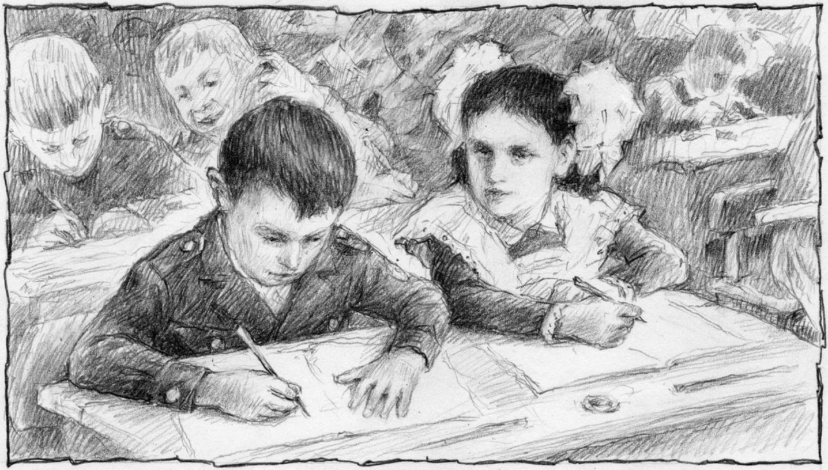 Так Лёша и Люда оказались перед учительским столом. Вот за что такое наказание? Ведь гораздо приятней сидеть на задней парте. Но место «на камчатке» во всех первых классах всегда почему-то достаётся главному верзиле. Вскоре выяснилось, что страшного в учёбе не было ничего. Лёшка учился на отлично и вовсе не потому, что зубрил задания, просто особо и учить там было нечего. Людка иногда спрашивала совета, и он как истинный джентльмен ей подсказывал и давал списать. Учиться ему нравилось, раздражала только необходимость таскать мешок на резинке для сменной обуви.