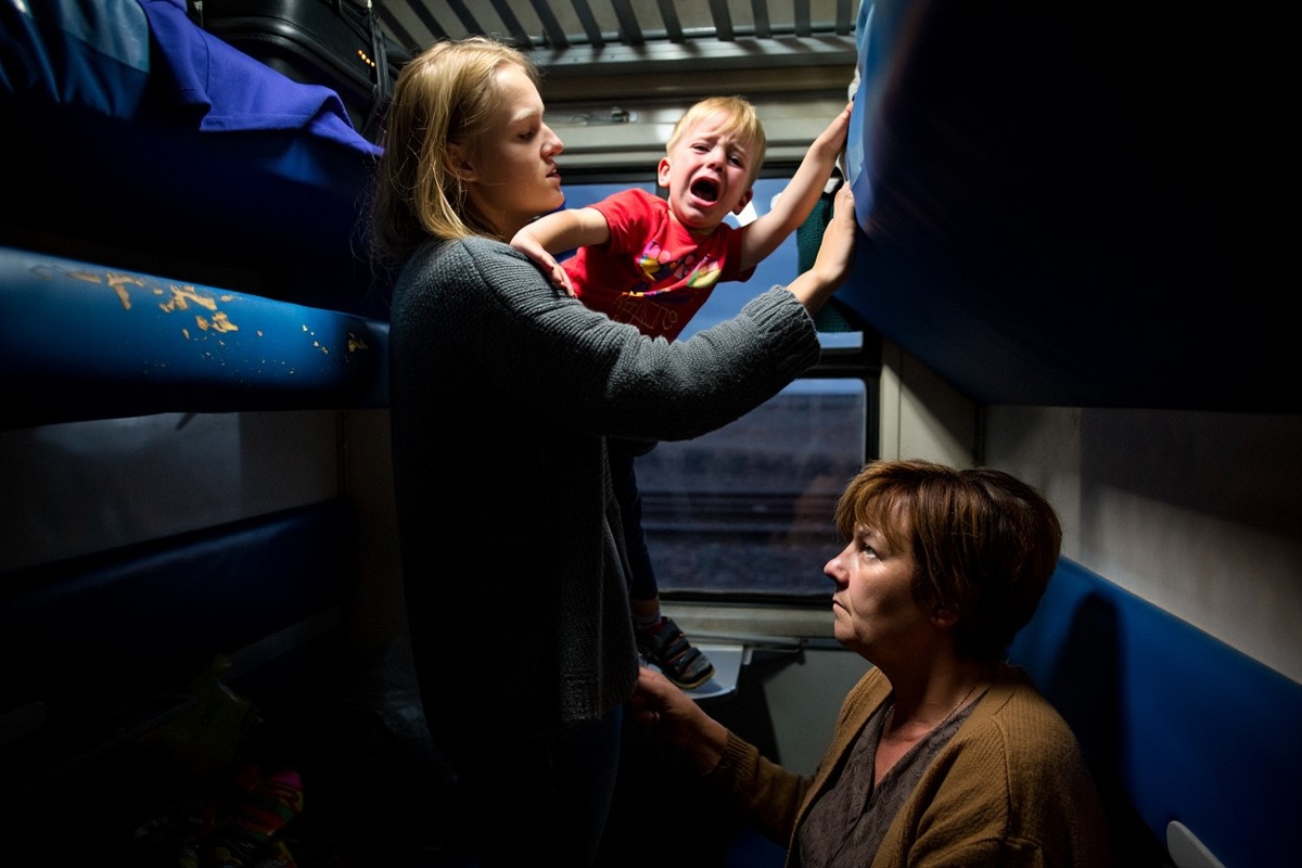 Мама решительно забирается на верхнюю полку, пытается устроить сына, но всё не так: голова почти стукается об потолок, с одной стороны не обложишь подушками, с другой — соскользнуть легко даже взрослому, что уж говорить о малыше… Мальчик начинает жалобно хныкать, всё громче и громче: ничто не помогает. Пару минут Ольга держит оборону, но тянет шею, спускаться с полки с ребёнком — вся на грани.