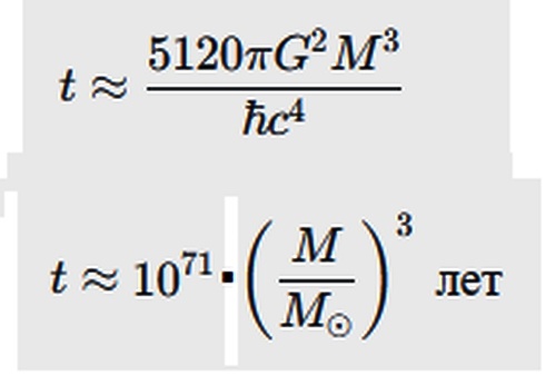 также из формулы видно что время жизни черной дыры пропорционально кубу её массы