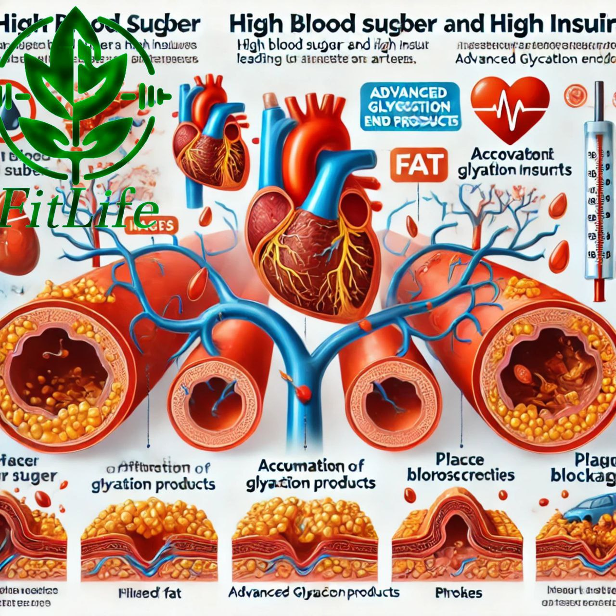 Это знание поможет вам лучше заботиться о своем сердечно-сосудистом здоровье и предотвратить возможные заболевания. - Повреждение артерий: • 🍬 Высокий уровень сахара в крови вызывает воспаление стенок артерий. • 🥓 Инсулин способствует накоплению жира в артериях, что может привести к атеросклерозу. - Конечные продукты гликирования (AGEs): • ⚠️ Эти вредные продукты образуются при соединении сахаров с белками или жирами. • 🩸 AGEs вызывают закупорку сосудов и повреждают артериальные стенки. - Повышение риска сердечно-сосудистых заболеваний: • 🚨 Инсулин увеличивает количество липопротеинов низкой плотности (плохого холестерина), что способствует образованию бляшек в артериях. - Воспаление и окислительный стресс: • 🔥 Сахар и инсулин способствуют воспалению и окислительному стрессу, что повреждает артерии. • 📉 Это приводит к ухудшению кровотока и повышению артериального давления. Рекомендации FitLife для здоровья ваших артерий: - 🥗 Снижение потребления сахара: Избегайте продуктов с выс