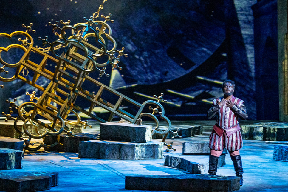Что вы представляете, когда слышите имя "Отелло"? Мужчину, любовь которого загубила его ревность. Имя Отелло давно стало нарицательным. Пьеса Шекспира, музыка Верди. Когда в искусстве соединяются два гения. Добавьте к этому Валерия Гергиева. Это уже тройное удовольствие. Ирина Чурилова - оперная дива, роскошная в своем присутствии на сцене и вокальном исполнении, равно как и в своём актерском мастерстве. Ованнес Айвазян - эталонный Отелло, мужественный воин, тонкий и ранимый, слепой в своей ревности. Яго Павла Янковского - чистое зло, без причины и примеси. Магеррам Гусейнов блистал во второстепенной партии Кассио. Зинаида Царенко в партии Эмилии оттеняла и дополняла госпожу. Прекрасно сбалансированный состав, великолепно исполненный и сыгранный спектакль. Сюжет, неумолимо движущийся к трагической развязке. Минималистичное сценическое решение - могильные плиты и огромный крест как символ злого рока. Исторические костюмы. Сохранён дух времени без старомодности. Многие оперы Верди дав