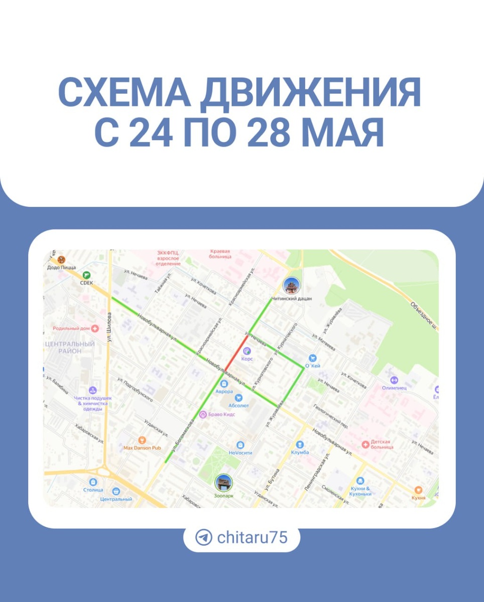 Перекрыто на перекрестке с Новобульварной. Автобусы будут ходить так: