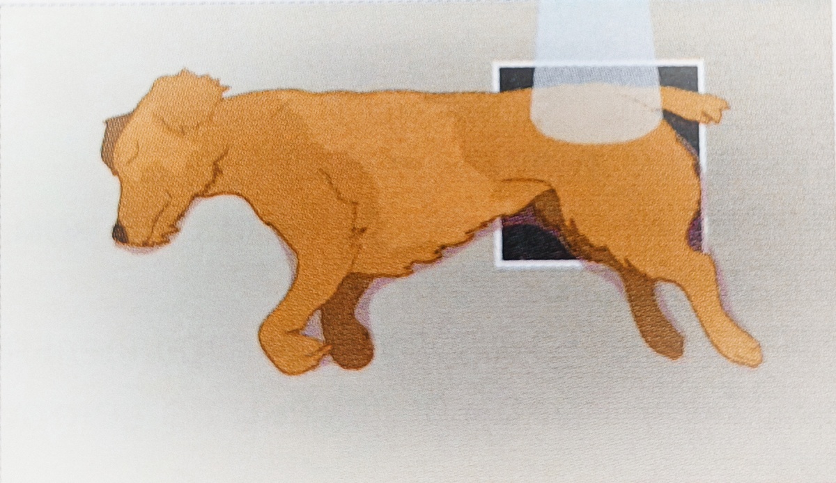 Стандартная оценка дисплазии тазобедренного сустава. Положение как для проекции «лягушачьих ног», за исключением того, что задние конечности вытянуты каудально, а бедра расположены прямо и параллельно друг другу. Зафиксируйте суставы с помощью липучек или завязок, а плюсневые кости — мешками с песком. Должны быть соблюдены следующие критерии: