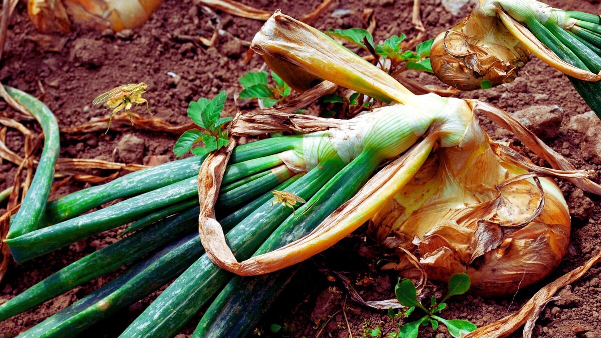 Лук — одна из самых популярных культур на огородах. Однако даже такой неприхотливый овощ подвергается нападениям вредителей. Одним из самых опасных считается луковая муха. Она может нанести серьезный ущерб урожаю, особенно если не принять своевременные меры. Луковая муха (Delia antiqua) внешне похожа на обычную домашнюю муху, но немного мельче — длиной около 6–8 мм, с сероватым телом и прозрачными крыльями. Личинки вредителя — белые, червеобразные, длиной до 10 мм. Основную опасность представляют именно личинки: они проникают внутрь луковицы и питаются её тканями, вызывая загнивание. увядание и пожелтение пера; неприятный запах из грядки; мягкие, загнивающие луковицы при выкапывании; наличие белых личинок внутри луковицы. Вредитель особенно активен весной и в начале лета, откладывая яйца в почву у основания растения. Через 4–7 дней появляются личинки, и уже через 2–3 недели они наносят ощутимый урон урожаю. Прежде чем прибегать к химии, стоит попробовать более щадящие и безопасные спос
