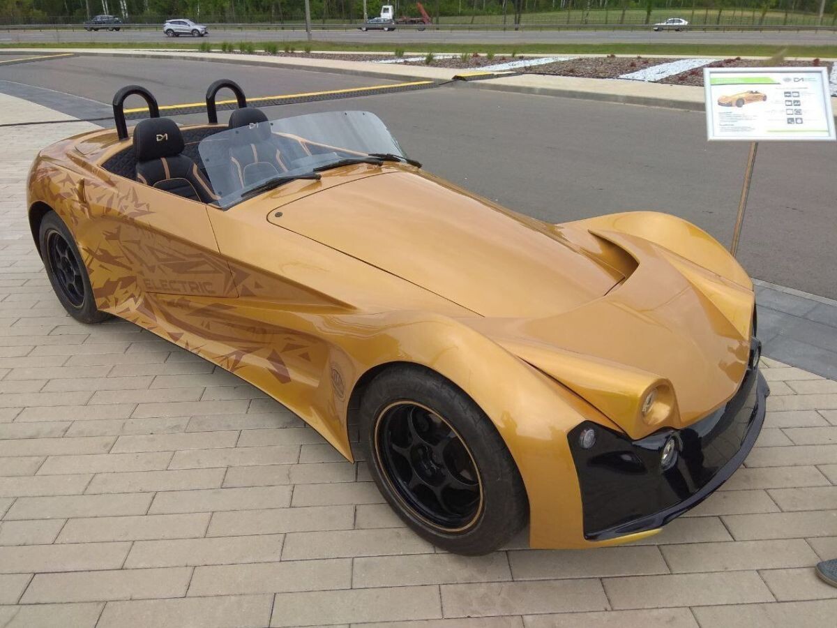 В Минске публике представили "золотой" электрический спорткар. Пускать его в серию не планируют, а будут отрабатывать на нем алгоритмы управления электроприводом в экстремальных режимах. Под капотом у Electro Roadster электромотор мощностью в 217 л.с. На одной зарядке можно проехать до 270 км, максимальная скорость - 170 км/ч.
