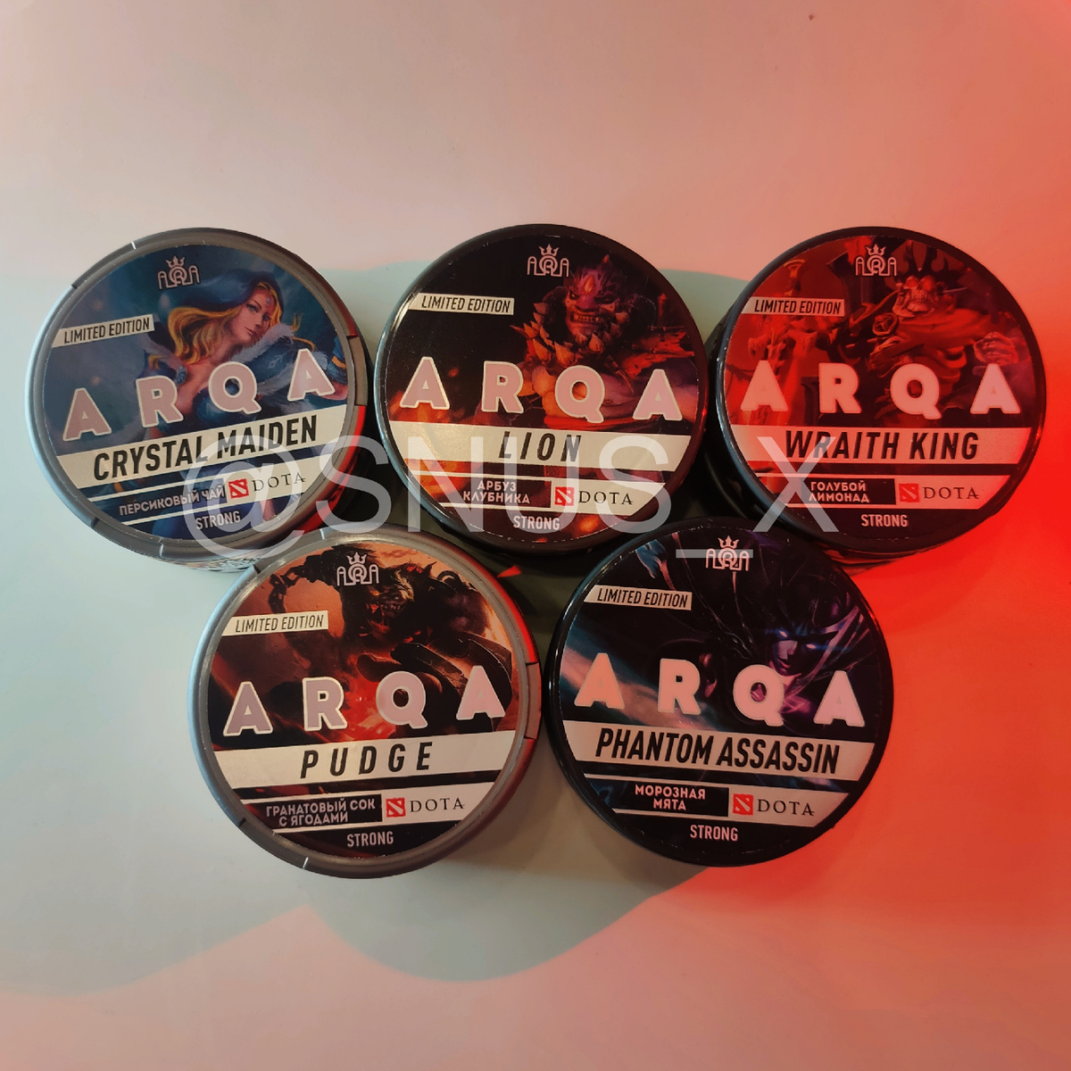 Ну что, снюсоманы-геймеры, вы дождались. Это обзор Арки линейка Дота со 120 мг. Внимание: статья несет исключительно развлекательный и ознакомительный характер для лиц старше 18 лет. Помните, что никотин вызывает привыкание и вредит вашему здоровью. Не является призывом к действию. Крепость: 120 мг Количество паков: около 20 Вкусы на обзоре: Морозная мята, Ананас Банан Личи, Фанта, Голубой Лимонад, Алоэ Виноград, Гранатовый сок с ягодами, Персиковый чай, Арбуз Клубника, Капучино, Черный Виноград, Йогурт Персик Клубника Поговорим о целом впечатлении. Дизайн, конечно же, связан с игрой Дота. Каждый вкус отображает какого-либо персонажа из игры. Надо отдать должное картинки качественные, на пиксели не распадаются. Наклейки приятные матовые. Шайба сделана на совесть. Тут встречаются шайбы и с отсеком снаружи, и с отсеком внутри под крышкой. Серый пластик, прозрачно дно, тут ниче нового в принципе нет. Паки крупненькие, тем не менее из-под губы не торчат, не выпадают. Не сильно плотно набит