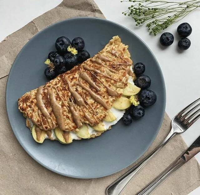 🎀🎀🎀🎀 3️⃣ Завтрак: Овсяноблин с бананом и арахисовой пастой • Обед: Запечённая рыба, картофель, огурцы и зелень • Ужин: запеченные овощи с булгуром • Перекус: банан, яблоко + орехи ( я заменила на кокосовую мякоть) Овсяноблин с бананом и ореховой пастой Ингредиенты (на 1 большую порцию): • Овсяные хлопья (быстрого приготовления или перемолотые) — 40 г • Банан — 1/2 шт (спелый) • Яйцо — 1 шт • Миндальное/банановое молоко — 40 мл • Разрыхлитель — 1/3 ч. л. (по желанию) • Кокосовое масло (или оливковое) — для жарки • Ореховая паста — 1 ч. л. (для начинки) • Ягоды/фрукты — по вкусу (для подачи) ⸻ Приготовление: 1. В миске разомни банан вилкой. 2. Добавь яйцо, овсяные хлопья, молоко и разрыхлитель. Перемешай до однородного теста. 3. Дай постоять 5–10 минут — овсянка немного разбухнет. 4. Разогрей сковороду, смажь маслом и вылей тесто. Обжарь на среднем огне под крышкой 2–3 минуты с каждой стороны. 5. Переложи на тарелку, намажь ореховой пастой, добавь ягоды или фрукты — и сложи п