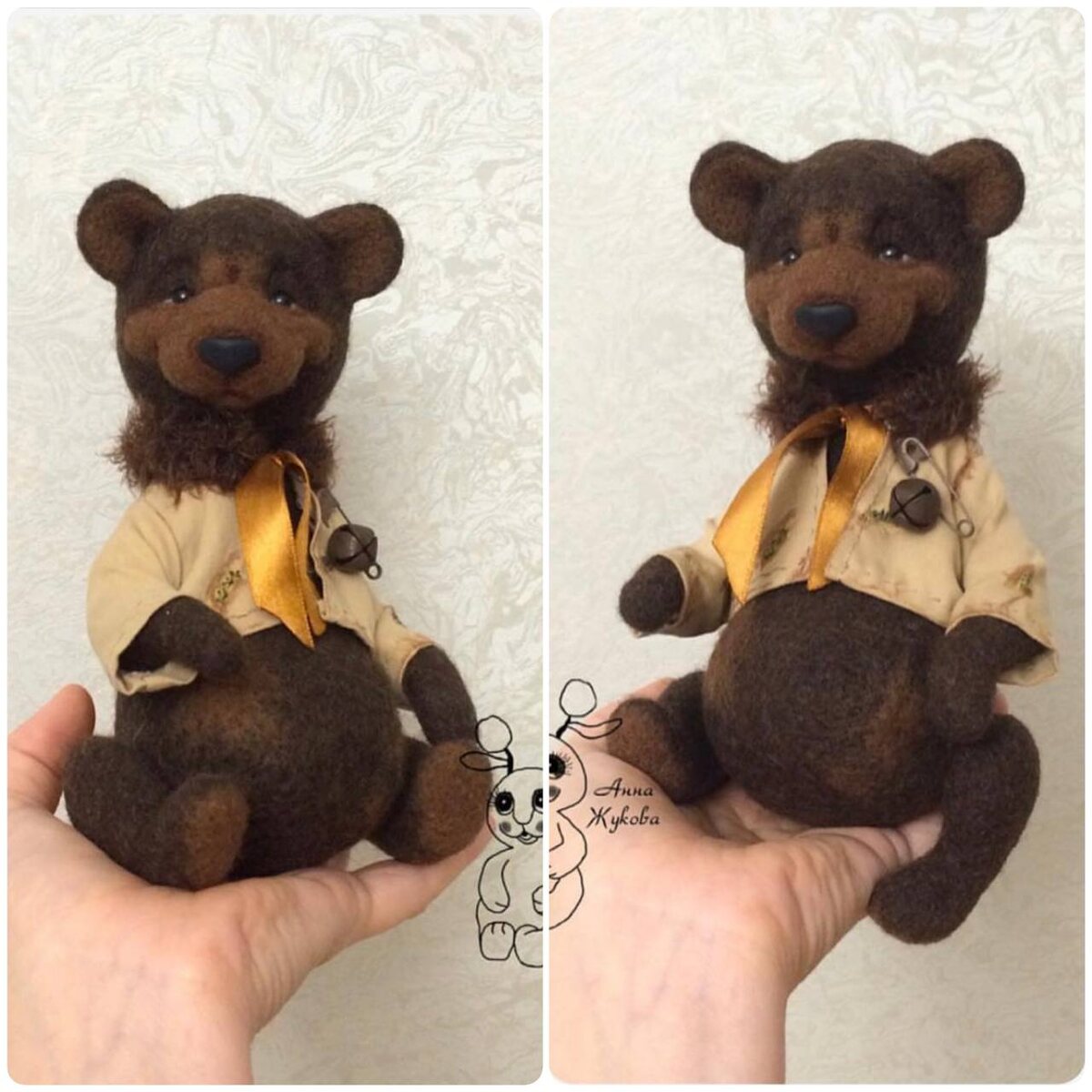 Это был первый опыт валяния мишки-имитации винтажного(состаренного)шитого тедди.У медведя голова и лапы на шплинтах-в валянии-это целая технология.Курточку сшила и состарила сама.Нравится вам мой Шоколадка?😊