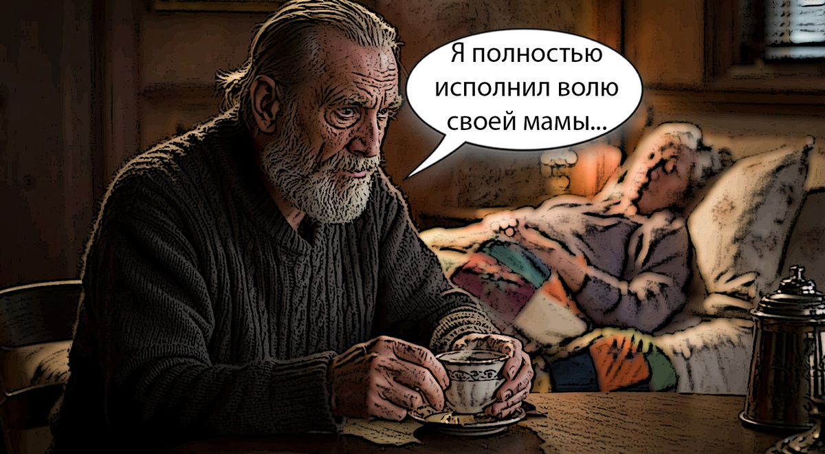 Да, ухаживал за мамой, помогал, но и нервы трепал. Бухал регулярно и по полной программе. Иногда домой привозили как бревно. Иногда мама даже полицию вызывала на него. Короче… «продлевал» ей эмоции всячески. Рассказчица полагает, что по принципу «Хотела – получи».