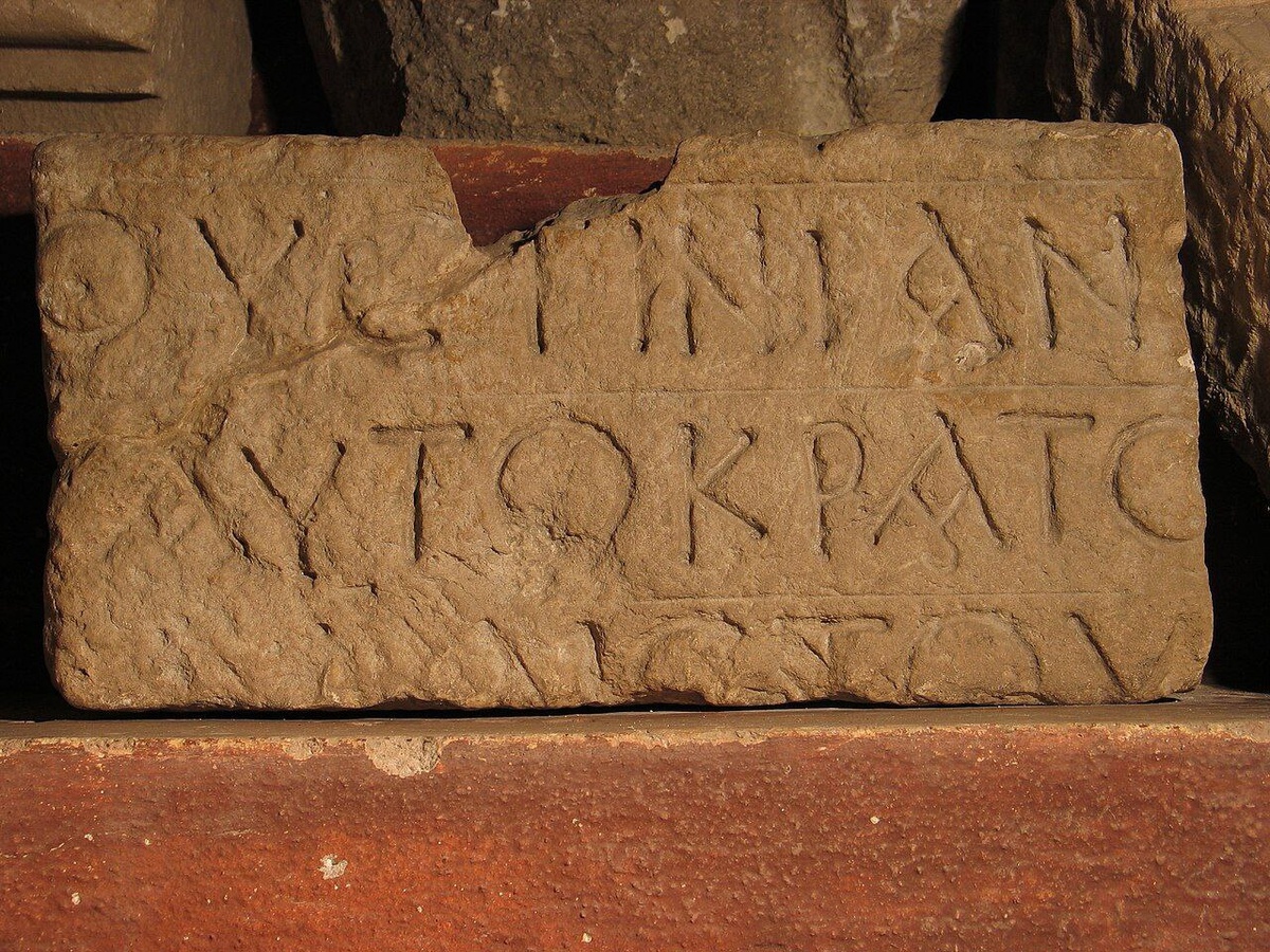 Надписи Крыма. Мангуп. Строительная надпись Юстиниана I. Данная надпись, на сегодня, - самый ранний из известных мангупских эпиграфических памятников VI века. Дата изготовления надписи остаётся предметом научных дискуссий (см. далее). Предполагается, что надпись повествует о строительстве крепости на Мангупе, известном из трактата Прокопия Кесарийского «О постройках». Перевод: «…при (?)] Юстиниане самодержце …, в 11-й индикт, в .. году». Датировка надписи, из-за неуверенного прочтения поврежденого текста — сохранились только верхние половины букв, а «11-й индикт» в правление Юстиниана I выпадал трижды, допускает и варианты, приходящиеся на 532—533, 547—548 или 562—563 год Артефакт был найден Р. Х. Лепером в 1913 году при раскопках Большой базилики, как вторично использованный (при этом с боков и снизу были стёсаны края плиты) при реконструкции храма. О "Длинных стенах" Прокопия: https://t.me/CrimeaQrim/672 Из фондов: Херсонесский музей #археология #история #Мангуп #Феодоро #до