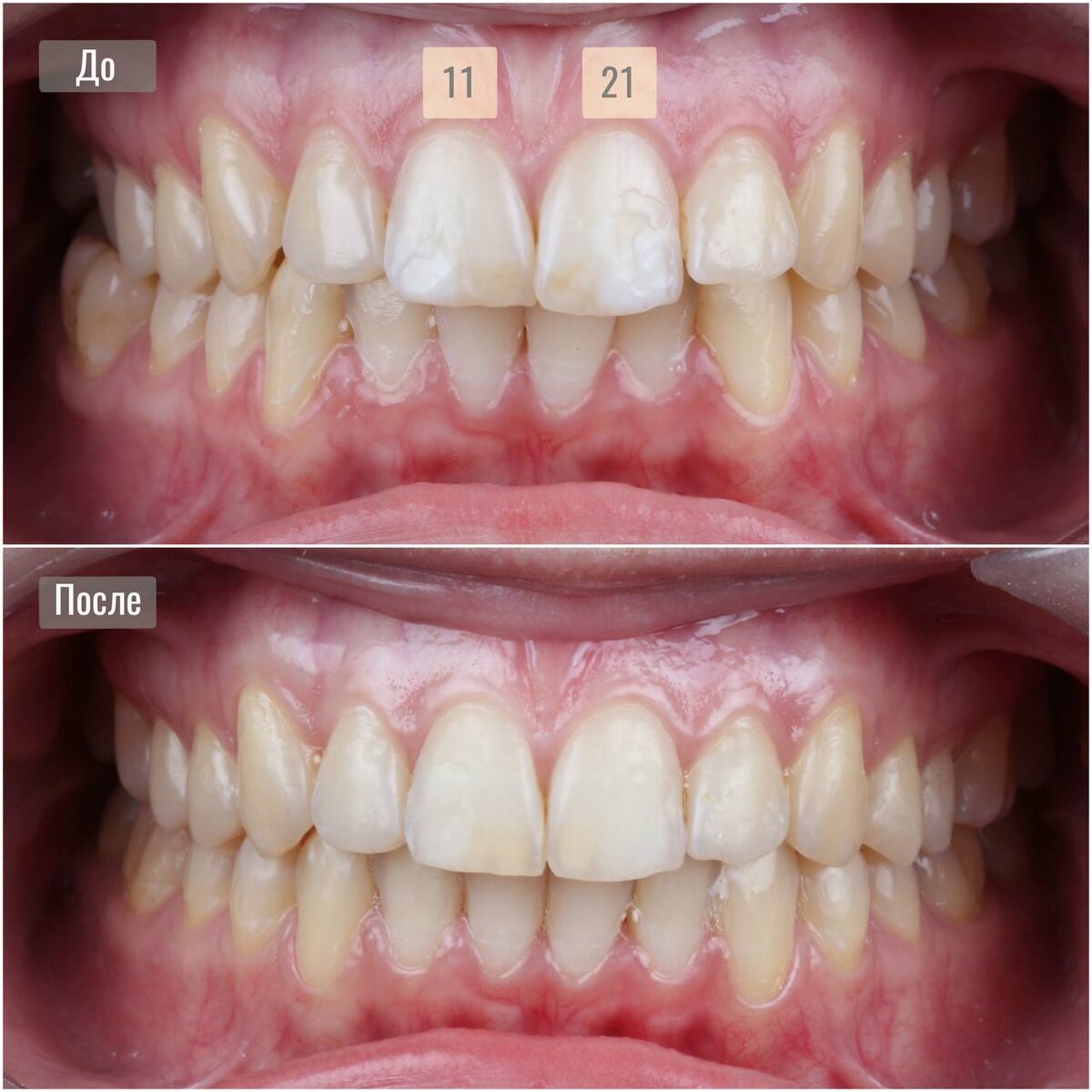 Пациентка обратилась с жалобами на щелчки в области височно-нижнечелюстного сустава справа. В ходе первичной консультации было установлено, что данное состояние не требует специального лечения. Основными задачами стали устранение перекрестного прикуса справа и улучшение эстетики улыбки. Перед началом ортодонтического этапа была проведена санация полости рта. Ортодонтическое лечение проводилось на элайнерах в течение одного года. Пациентка тщательно соблюдала все рекомендации и ответственно носила каппы. Результат — гармоничный, эстетичный и, что особенно важно, функционально стабильный. Приятный бонус: щелчки в области ВНЧС больше не беспокоят. Но помним, что ЭТО ЛИШЬ ПРИЯТНЫЙ БОНУС, а не цель, ради которой стоит начинать ортодонтическое лечение. См. нашу тему по ВНЧС #допосле #внчс