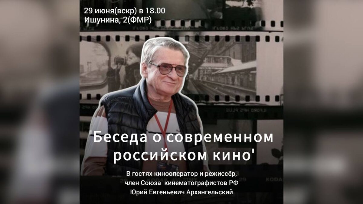 "БЕСЕДА О СОВРЕМЕННОМ РОССИЙСКОМ КИНО" В культурном пространстве "Спутник" - кинооператор и режиссёр, член Союза КинематографистовРФ Юрий Евгеньевич Архангельский Кино — один из самых молодых видов искусства, ему едва исполнилось 100 лет. Но за это время оно успело стать неотъемлемой частью повседневной жизни. Если вы хотите ориентироваться в современной культуре - без понимания кино не обойтись -Какое игровое кино в российском прокате за последние 10 лет стоит посмотреть? -Международные кинофестивали- камертон хорошего кино. -Тенденции в современных отечественных сериалах. Документальное кино и современность Вам предлагается разговор и обсуждение вопросов о современном отечественном кино с Юрием Евгеньевичем Архангельским - доктором культурологии, профессором Ростовского филиала ВГИК имени С.А. Герасимова, заслуженным работником культуры Кубани, членом Союза Кинематографистов РФ В мае этого года Юрий Евгеньевич работал в составе жюри на юбилейном V кинофестивале патриотического кино