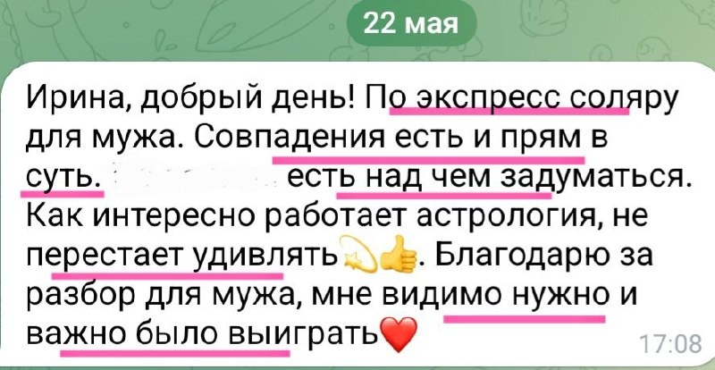 ⁉️Зачем заказывать Прогноз на год? При разборе вы получаете важные рекомендации, которые вам помогут: ✅Закрыть старые гештальты, которые тянутся и не дают вам развернуть плечи ✅ Подсветить главные темы личного года, которые помогут заложить фундамент на будущее ✅Избежать рисков по сферам, которые прописаны в Соляре (как-то рассказывала, как личный прогноз помог избежать больших финансовых потерь) ✅Прожить максимально гармонично непростой прогноз, потому что подсказываю способы компенсации когда нужно притормозить, не лезть на рожон. ✅ Сохранить и приумножить финансы, потому что каждый год у нас есть дополнительные правила к нашей Натальной карте. ✅Иногда девушка ждёт отношений, а год про карьеру. И надо обратить внимание на эту сферу, а отношения будут в следующем году. Но она упорно будет ждать, тратить время на сайты, ненужные коммуникации. Прогноз в астрологии не про гадание, а про использование личных трендов себе во благо. ‼️Сегодня последний день, когда можно заказать Э