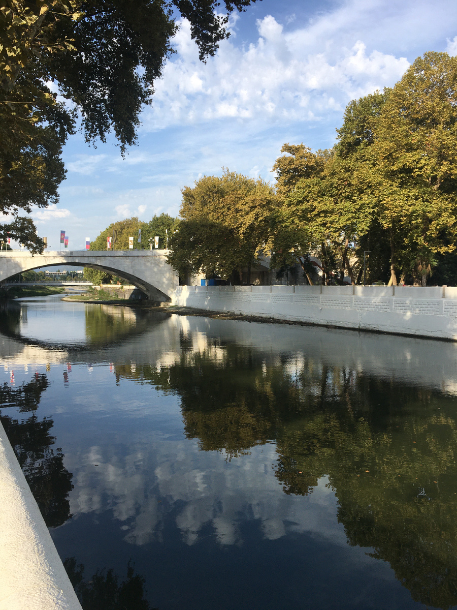 В парк в этот раз я не иду. Сначала я впечатляюсь видами на белоснежный арочный автомобильный «Ривьерский мост».