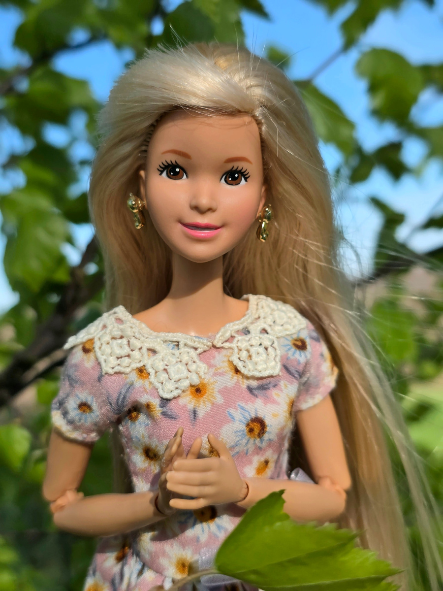 Я не перестаю восхищаться своей Наташей - Jazzie Swim Suit. Это милейшее создание смотрит на меня своими распахнутыми карими глазищами, я таю и сразу предлагаю ей идеи для прогулок. Ну и конечно весну и буйное цветение всего подряд проигнорировать никак нельзя. В этот раз Наташа сподвигла меня перетряхнуть кукольный гардероб и найти ей максимально девочковый образ. Я вспомнила про одно платье - бантик, цветочки, пастельные тона. Но чего-то всё же не хватает... Воротник! Сделано! Вот теперь порядок, в таком виде самое то идти обниматься с берёзками. Я заметила еще во время предыдущих прогулок, что Наташа питает слабость именно к этим деревьям. Ну что ж, предоставляю ей полную свободу. Галерею временно не могу оформлять, пока только такой формат. А фото очень много получилось, все не вместить ни в какую статью. Вообще-то мы изначально шли фотографировать цветущую черемуху, но с ней у меня в этот раз как-то не особо складывается - всё время вмешиваются сторонние факторы. Но в э