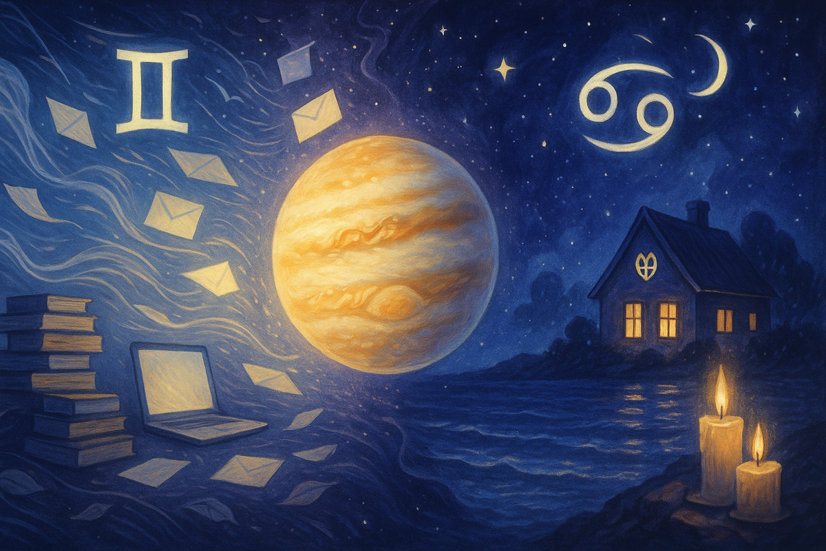 Юпитер уходит из Близнецов: с 10 июня 2025 начинается время глубины и семьи (Часть 1)