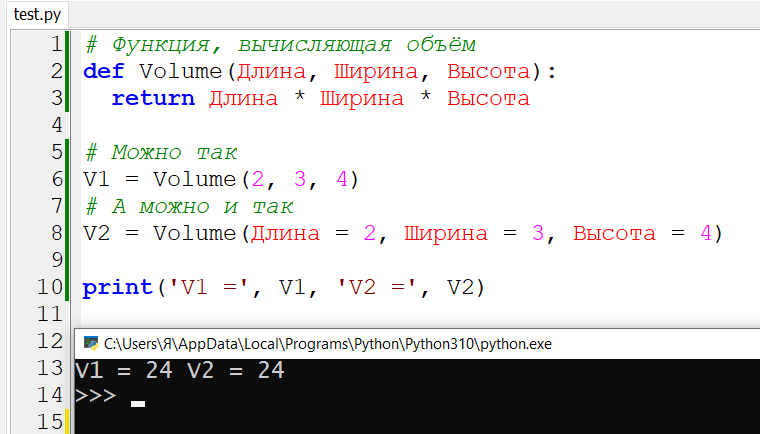 Ранее я уже рассказывал, как определять собственные функции в Python. О том, как передавать в функции аргументы, я тоже говорил. А сегодня об одной особенности аргументов в функциях Python, которая называется ключевые аргументы (keyword arguments). Когда вы вызываете функцию, у которой есть аргументы, то почти во всех языках программирования это делается так: Функция(Аргумент1, Аргумент2, … , АршументN) И здесь нет никаких сложностей, кроме одной - если в функцию передаётся несколько аргументов, то можно забыть, в какой последовательности они следуют друг за другом, и, например, такой вызов: Функция(2, 3, 4) который попадётся вам в коде программы, будет не очень понятен, потому что вы можете и не вспомнить, что такое 2, что такое 3 и что такое 4. Использование ключевых аргументов устраняет эту неприятность, потому что при таком вызове функции вы пишите имена аргументов функции, и если эти имена имеют какой-то смысл, то сразу станет понятно, какой аргумент для каких целей служит. Пример