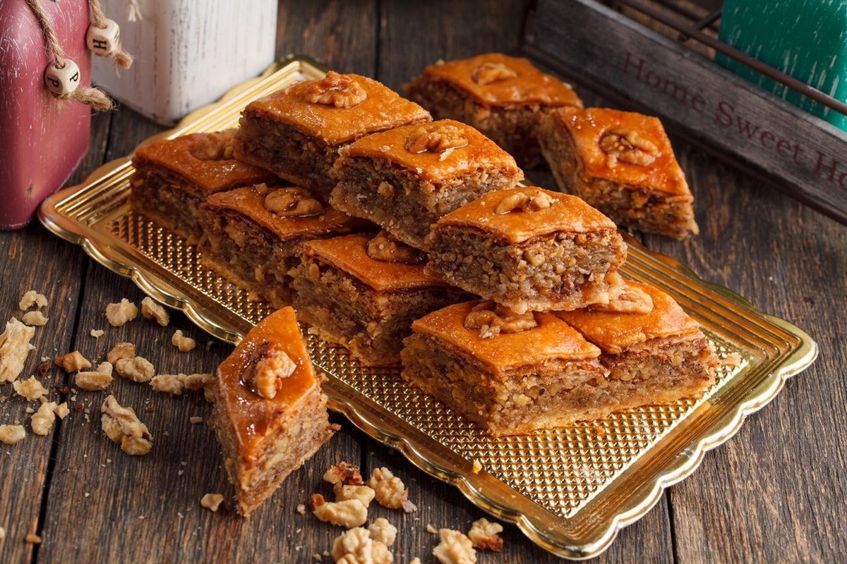 Пахлава - это восточное лакомство, которое пользуется большой популярностью в странах Ближнего Востока и Средиземноморья. История этого десерта насчитывает уже много веков. В 1473 г. в кухонной книге стамбульского дворца Топкапы был записан рецепт сладкого кушанья «баклава» или «паклава», что в переводе с тюркского и вовсе означает «орехи», которых в пахлаве должно быть очень много! Мед и орехи с давних времен считались действенными афродизиаками для мужчин, а кардамон и корица – для женщин. Каждый богатый дом в Османской империи нуждался в поваре, умеющем готовить этот сладостный десерт. Да и названия он получал самые неожиданные – «гнездо соловья», «дамский животик», «султанская чалма. В те времена никто не сомневался, что в уважающей себя пахлаве должно быть не менее 100 слоев тончайшего теста. Десерт раскатывали до состояния прозрачности и щедро пропитывали сиропом с медом и сахаром, причем сироп должен был быть обязательно прохладным, а вот тесто, напротив, горячим. Говорят, в э