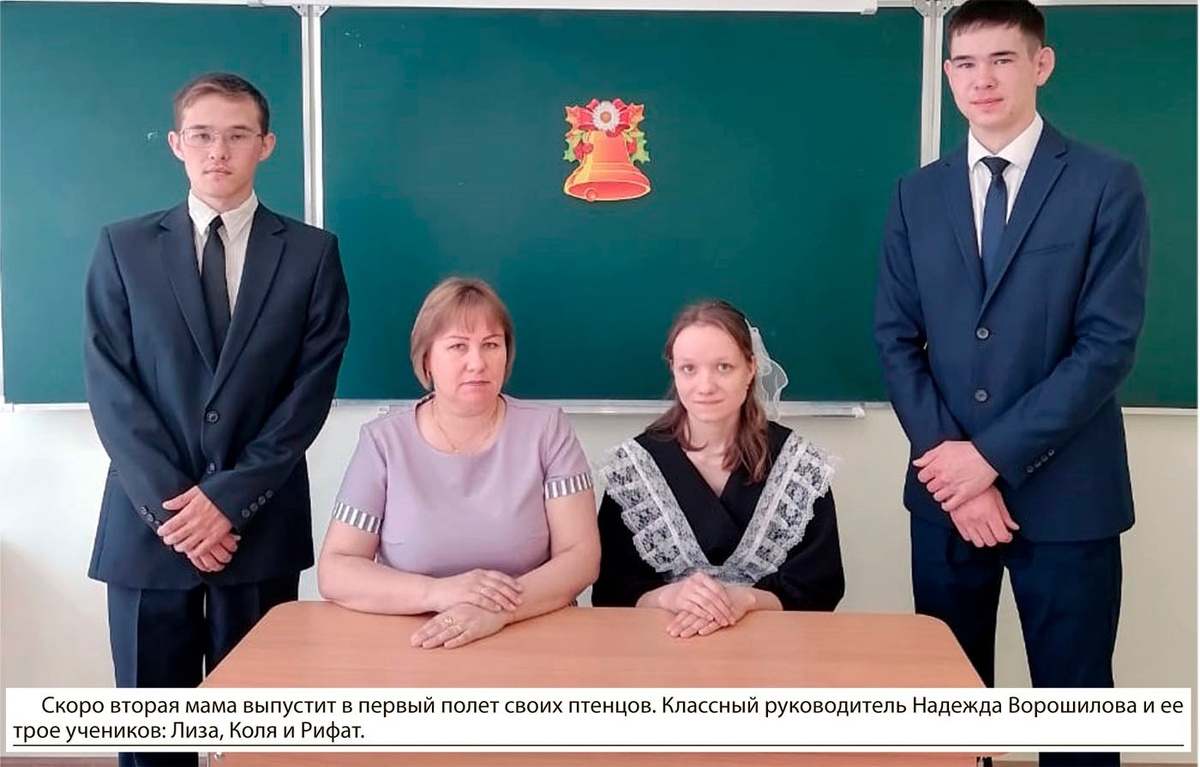 Сегодня в школах района проходят праздничные мероприятия с участием выпускников 11-х классов, их родителей и педагогов. Героями торжественного мероприятия в школе села Кривле-Илюшкино в этом году будут трое выпускников. Это Елизавета Ворошилова из Кривле-Илюшкино, Николай Кирилов из Павловки и Рифат Хисамов из Кинзябаево. - Спокойные, доброжелательные, исполнительные, вежливые - так характеризует своих выпускников классный руководитель, директор школы Надежда ВОРОШИЛОВА. - У каждого есть свои увлечения, и все они уже определились с вузами. Коля и Рифат хорошо разбираются в современной технике, с компьютерами и современными программами на «ты». Из ребят, уверена, получатся прекрасные айтишники. Елизавета рисует, поёт, танцует, успешно занималась выращиванием разных сортов арбузов на опытном участке, но по мере взросления её интересы изменились, она планирует учиться в техническом вузе. Сейчас перед ними стоит задача хорошо сдать единый государственный экзамен. Конеч