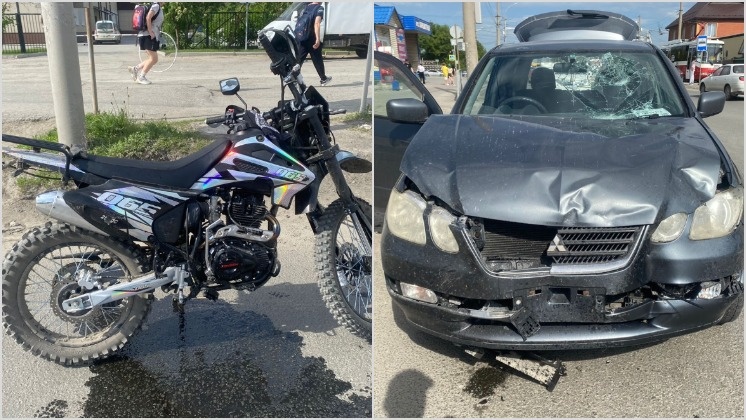 По информации ведомства, в 16:10 14-летний водитель без прав ехал за рулем кроссового мотоцикла Enduro и при выезде с межквартального проезда около дома № 184 по улице Титова столкнулся с автомобилем Mitsubishi Airtrek.