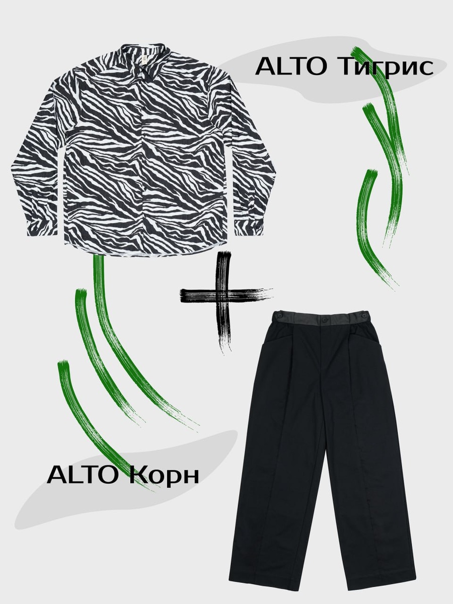 Комплект дня: акцентная тигровая рубашка и свободные брюки с открытыми срезами на стрелках. Врываемся в выходные с уверенностью городского хищника 🐅 #altoplano_shop