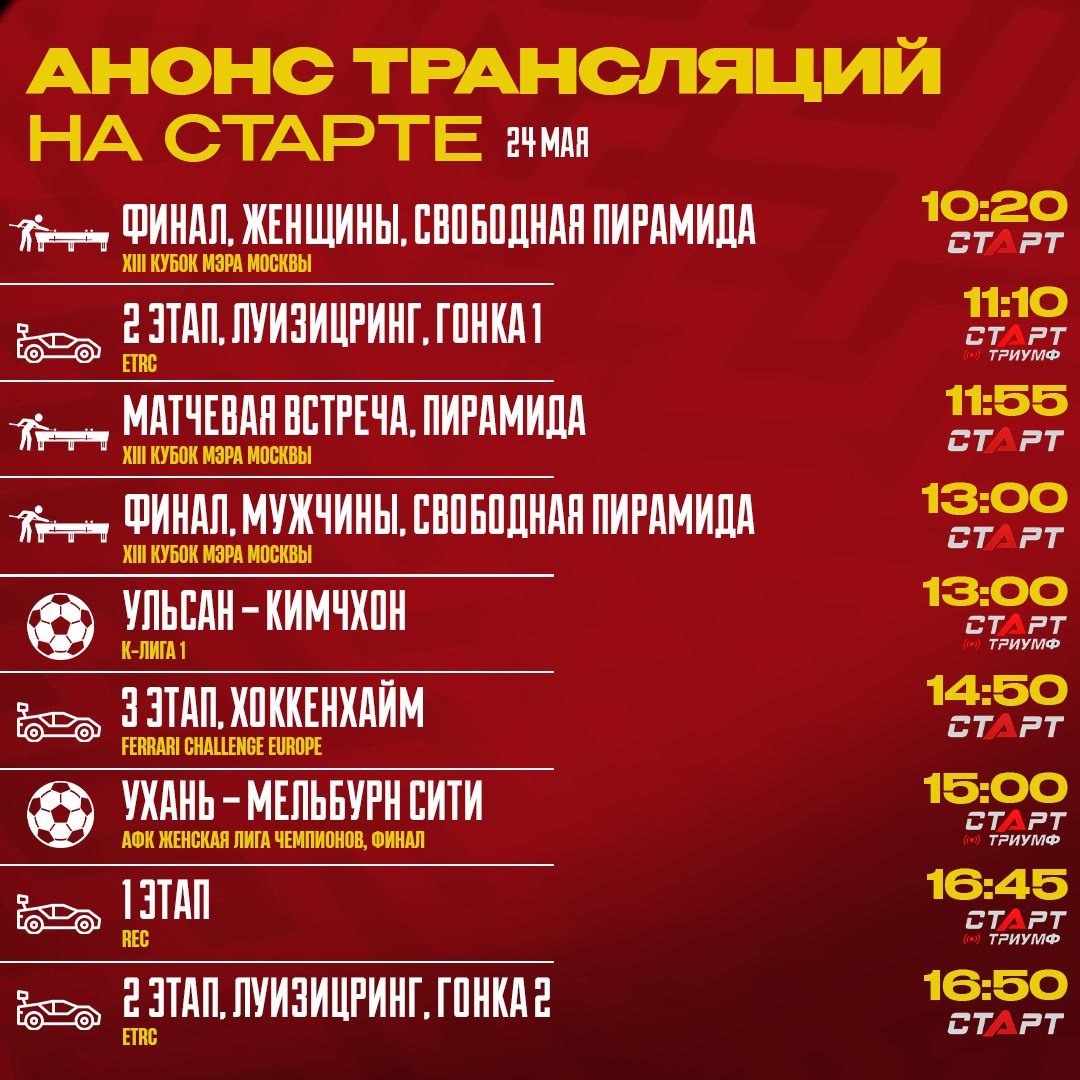 🍿📺 Настраиваемся на бодрейшую субботу с TVSTART.RU! Следим за марафоном бильярда и автоспорта в первой половине дня, узнаем лучшую женскую футбольную команду Азии и заглянем на К-Лигу 1. Во второй вас ждет испанский и немецкий баскетбол, развязка чемпионской гонки в Австрии, ну и, конечно, финал Кубка Франции – ждём на поле Матвея Сафонова. Оставайтесь весь день на платформе TVSTART.RU 🖥 🛒 Наше приложение в Google Play (вне РФ) 💙 Наше приложение в RuStore (для РФ) 🛒 Наше приложение в App Store