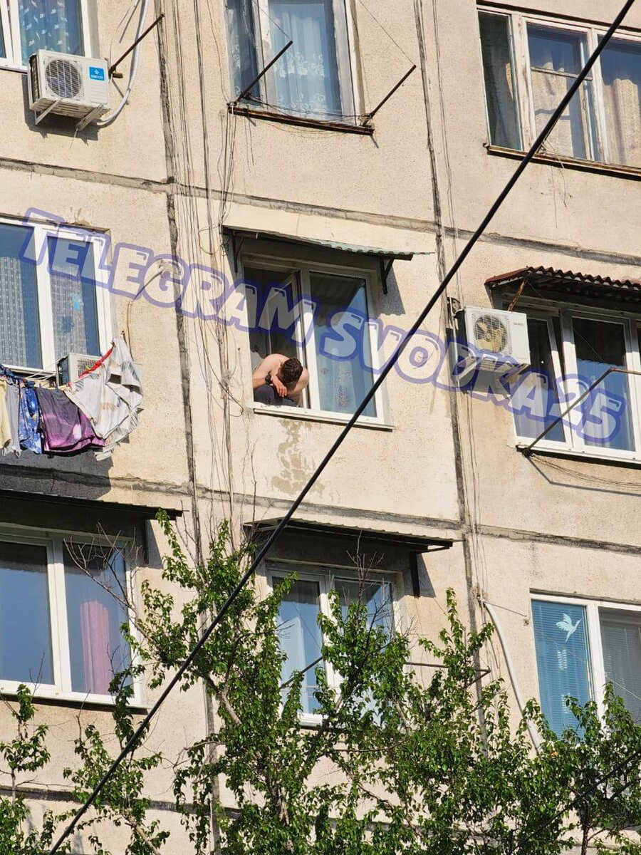 Пьяный мужчина заснул прямо на краю подоконника шестого этажа во Владивостоке