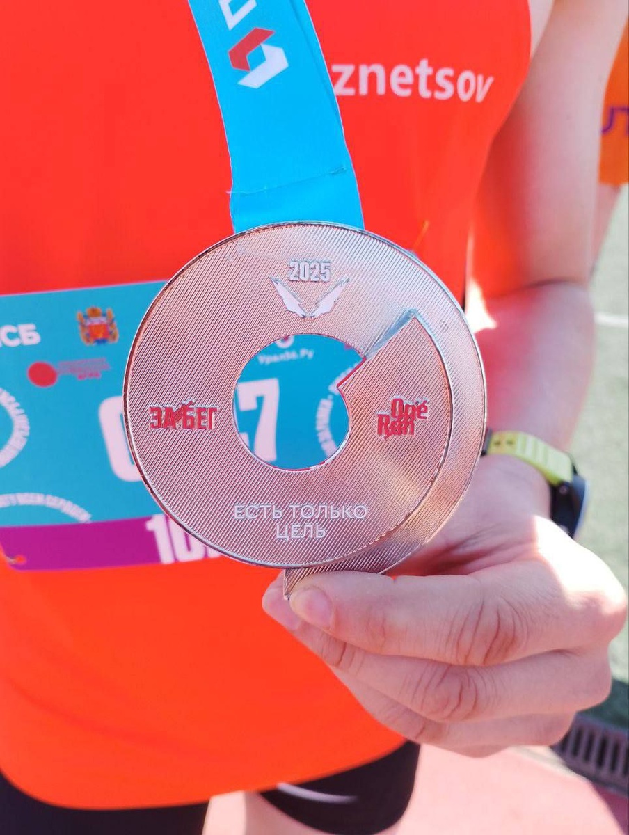 Участники Полумарафона получают медали с торжественным девизом «Есть только цель