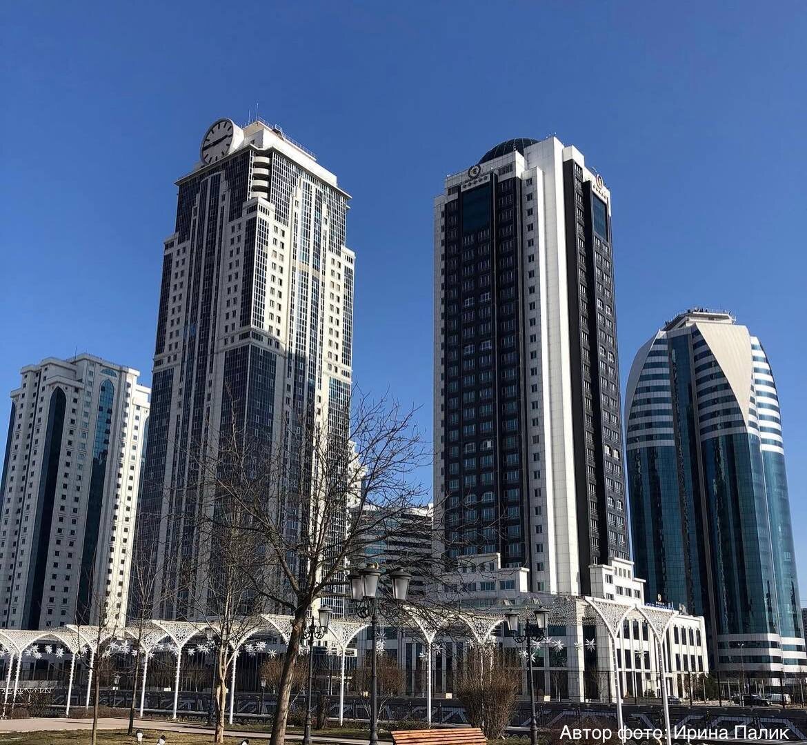 Грозный сити 🏙️ В самом сердце столицы Чеченской Республики, на проспекте имени Ахмата Кадырова, раскинулся впечатляющий архитектурный комплекс - Грозный-Сити. 🙌🏻Он возвышается на берегу реки Сунжа и стал настоящим символом нового Грозного. Комплекс строился с 2005 по 2011 год и включает 7 высотных зданий: 🔺одно 40-этажное 🔺одно 30-этажное 🔺три 28-этажных 🔺два 18-этажных Центральная и самая высокая башня комплекса - «Феникс», 40 этажей. На её нижних уровнях расположен современный торговый центр, а выше - элитные жилые апартаменты с панорамным видом на город и горы. #чечня #грозный #город