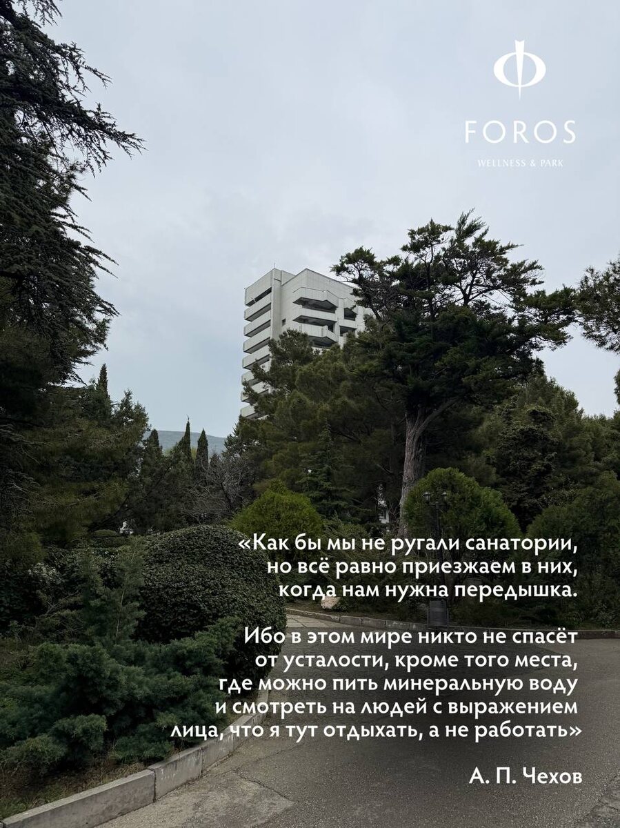 Место, где лечит не природа, но и тишина. Как точно сказал Чехов: «Как бы мы не ругали санатории, но всё равно приезжаем в них, когда нам нужна передышка. Ибо в этом мире никто не спасёт от усталости, кроме того места, где можно пить минеральную воду и смотреть на людей с выражением лица, что я тут отдыхать, а не работать».