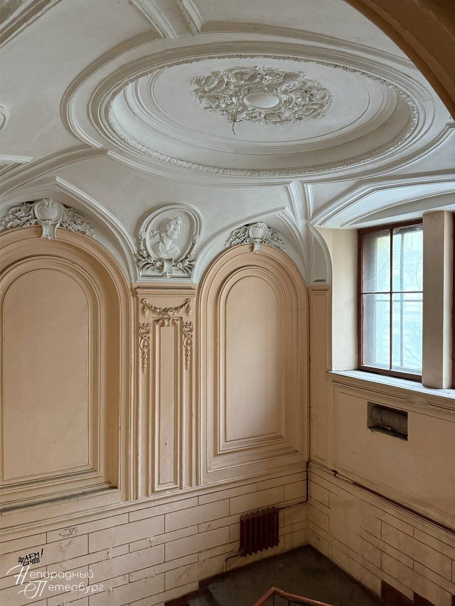 Парадная дома «Пале Рояль» 🙏🏻 Дом баронессы фон Таубе – меблированный дом «Пале Рояль» построен в 1876 году по проекту архитектора А.В.Иванова в эклектичном стиле. Здание вошло в историю Петербурга как гостиница – здесь подолгу жили Шаляпин и Дальский, останавливались Чехов, Бунин и Маяковский. После революции дом преобразовали в общежитие для железнодорожников. Позже здесь устроили коммунальные квартиры, существующие по сей день. Парадная дома необычна – расположенная справа от входа лестница, кованые перила, арочные окна с оригинальными рамами и витражное окно. Потолок украшен лепниной и женскими профилями. К сожалению, в настоящее время парадная находится не в лучшем состоянии, выдерживая на себе следы вандалов и загрязнения. 📍Адрес – Пушкинская ул., 20 #непарадныйпетербург @vladislavkarpyuk