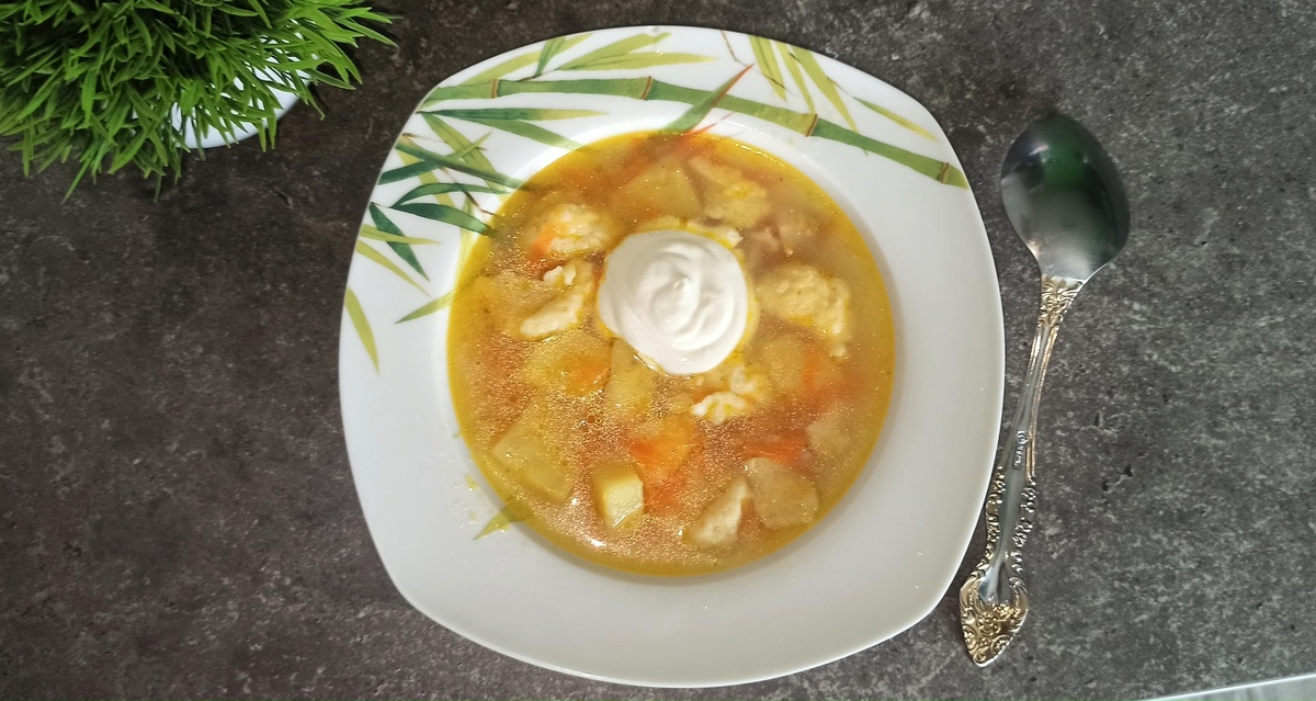🥣 Согревающий, домашний, с тягучими сырными облачками. Есть такие дни, когда хочется чего-то совсем простого, родного, чтобы пахло детством и кухней бабушки. Этот суп именно такой. Только с одним поворотом - нежные сырные клецки делают его чуть интереснее, вкуснее, уютнее. Для этого блюда нам понадобятся следующие ингредиенты: Для сырных клецек: Сначала варим курицу. Как только бульон закипел, снимаем пенку, добавляем лавровый лист и варим до готовности. Тем временем чистим овощи. Лук мелко рубим, морковь натираем, или нарезаем и обжариваем на сковороде до мягкости. Картошку режем кубиками и отправляем в бульон, когда курица почти готова. Добавляем туда же обжарку и аккуратно перемешиваем. Пока суп доходит до стадии кипения, готовим клецки. В миске смешиваем яйцо, сметану, соль, сыр, соду и муку. Масса должна быть тягучей, как густая сметана - не жидкая, но и не крутая. Чайную ложку смачиваем в бульоне и начинаем выкладывать клецки прямо в горячий суп. После каждой клецки снова смачив
