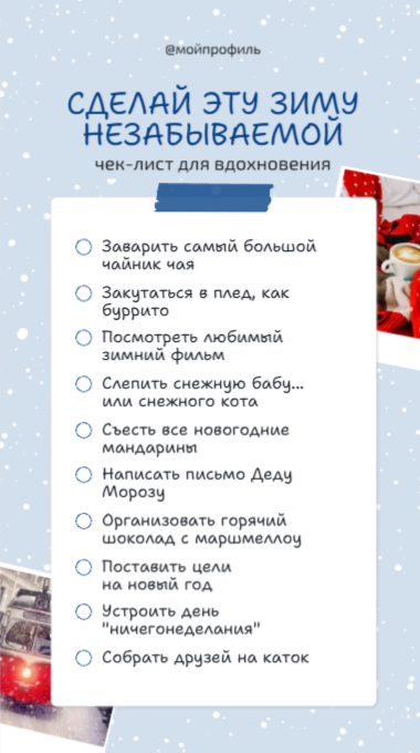 Зимний период — идеальное время для перезагрузки, творчества и активного отдыха. Вот несколько идей, чем можно занять себя и близких, чтобы провести дни интересно и весело: