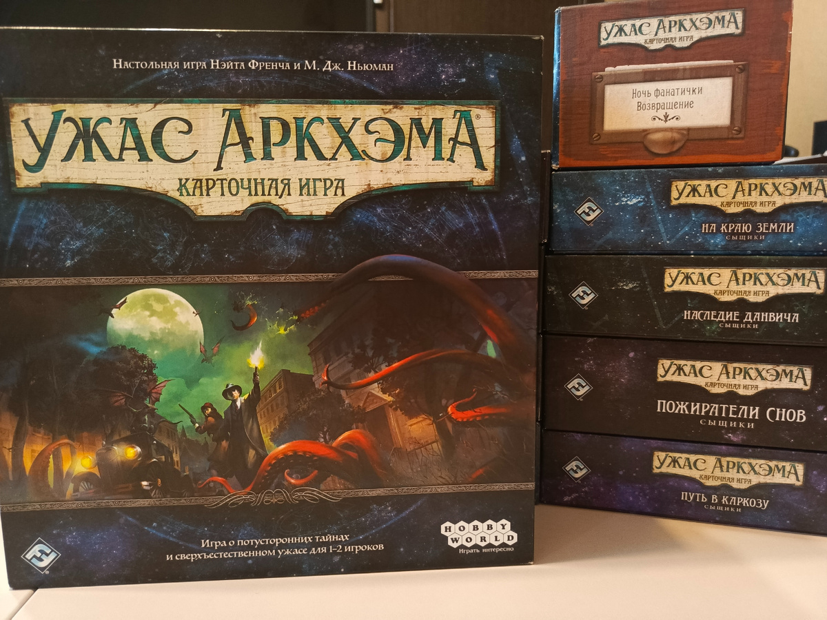 Резюмирую: как я уже и говорила, это просто отличная сюжетная кооперативная игра. Она подойдёт для 1-4 игроков и полностью погружает в мир Лавкрафта. Если вы готовы к сбору колод и немалым финансовым растратам на каждую компанию, то этот выбор точно для вас.