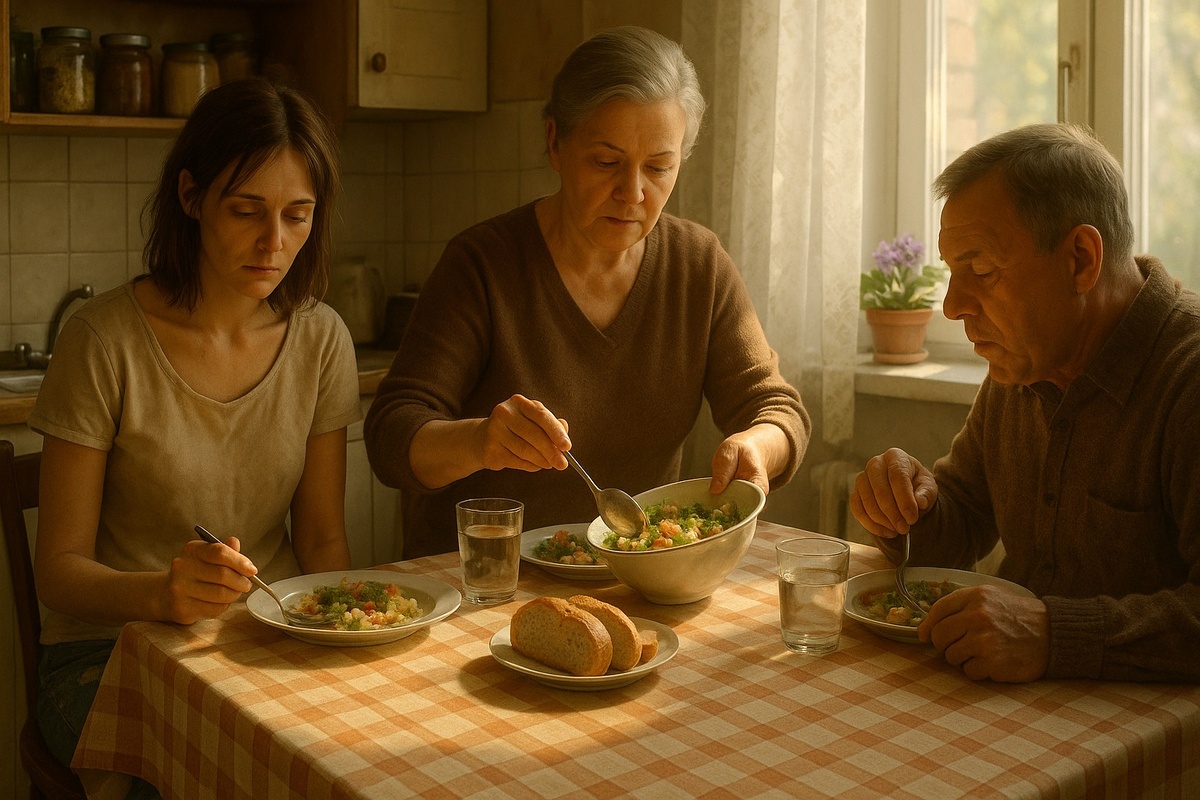 – Развелась, значит, – начала Елена Павловна за ужином, аккуратно раскладывая салат по тарелкам. Отец, Виктор Андреевич, молчаливо жевал, стараясь не встречаться взглядом ни с женой, ни с дочерью. – Я же тебе говорила, Анечка, этот твой Сергей… ненадежный он. Слишком уж лощеный, слишком на словах герой. А ты – «люблю-не могу». Вот и долюбилась.