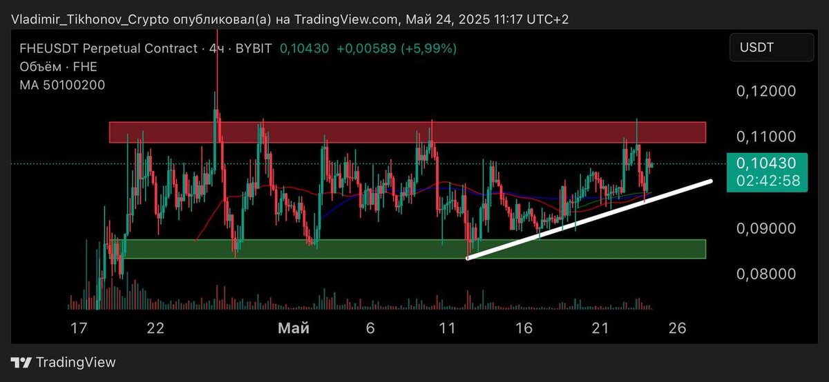 #FHE Довольно длительная консолидация. В случае прорыва красного блока может дать 30-50% профита