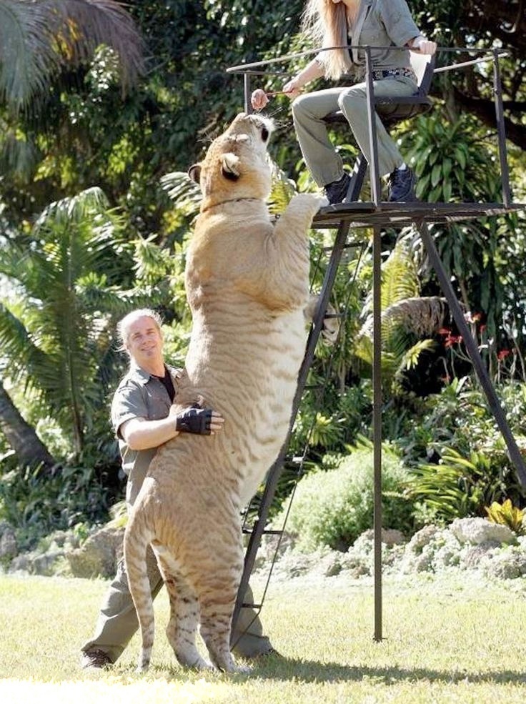 Геркулес родился в 2002 году в Институте редких животных в Майами. Несмотря на гигантский размер, он остаётся подвижным, может бегать со скоростью до 80 км/ч и съедает до 45 кг мяса в день. По телосложению он похож на льва, но имеет полосы, как у тигра.