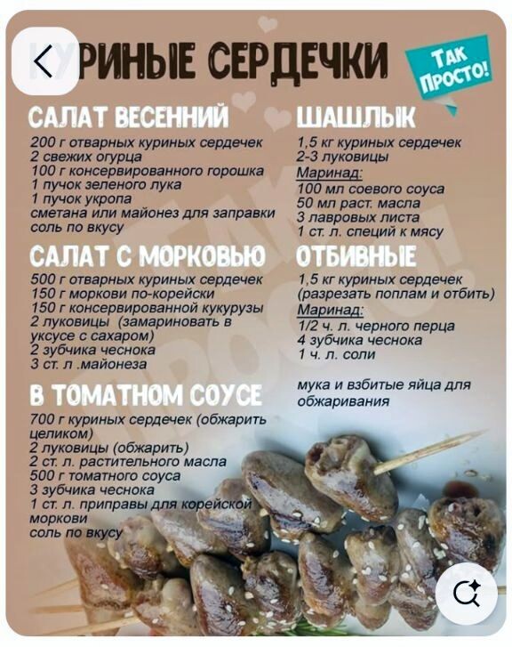 Рецепты в открытках из куриных потрошков.